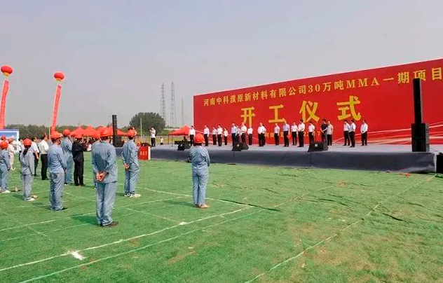 on july 1, henan energy held a groundbreaking ceremony for the first phase of the 300,000-ton mma project in puyang park, marking the official start of construction of the first domestic new-type ionic liquid-catalyzed ethylene-based mma industrialization plant. it is understood that the project is jointly funded and constructed by zhongyuan dahua company, puyang financial holding co., ltd., and puyang economic and technological development zone urban construction investment co., ltd. the total investment of the first phase of the project is 997 million yuan, and the registered capital is 330 million yuan.