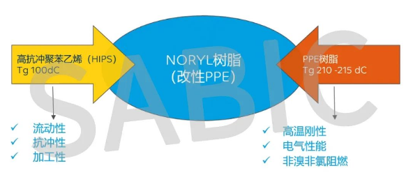 noryl™ resins are fully compatible blends of ppe (polyphenylene ether) and hips (high impact polystyrene). noryl™ resins fully integrate the properties of ppe and hips materials to form high-performance materials with high fluidity, high impact resistance, ease of processing, high temperature stiffness, and low dielectric constant/dielectric loss.
