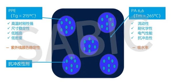 in the extreme environments of automotive applications such as cold, heat and humidity, noryl