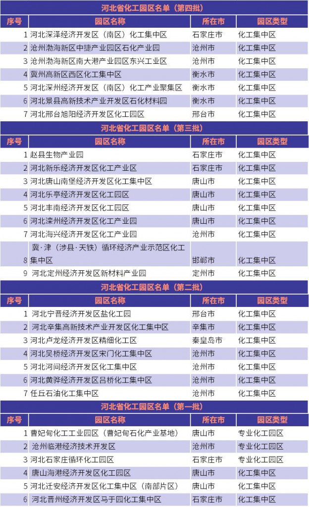 latest news: on august 7, the hebei provincial department of industry and information technology issued a notice, in accordance with the “hebei provincial chemical industry park recognition measures (trial)” (ji zheng ban zi [2020] no. 182) and according to the requirements of “chemical park construction standards and certification management measures (trial)” (ministry of industry and information technology lianyuan [2021] no. 220), the list of the fourth batch of certified chemical parks is now published. the list of the fourth batch of chemical parks was announced. there are a total of 7 parks announced this time, all of which are chemical concentration areas.