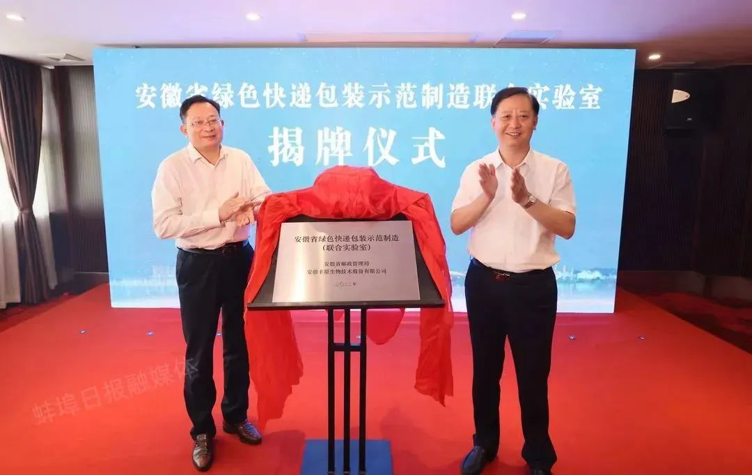 anhui province green express packaging demonstration manufacturing (joint laboratory) jointly constructed by anhui post office and anhui fengyuan biotechnology co., ltd. was unveiled.