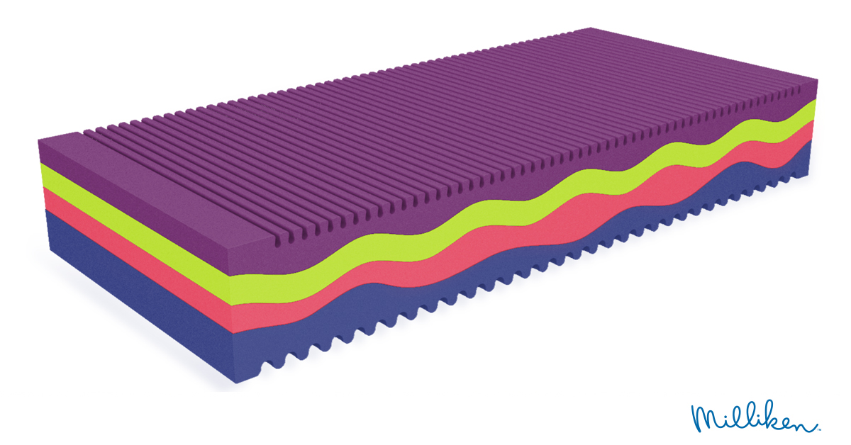 the company is expanding its product portfolio through a long-term partnership with milliken’s chemical business in 2008. about four years ago, it began focusing on developing deeper shades of polyurethane foam using meriken’s reactint® liquid polymer colorants to further help its products stand out in the competitive mattress market. the strategy is working.