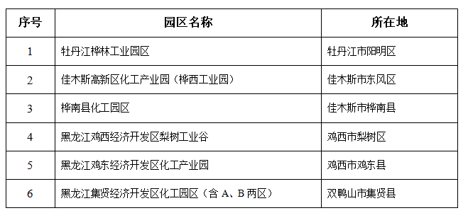 in july 2022, the heilongjiang provincial department of industry and information technology announced the list of chemical parks to be identified (the first batch), a total of 8.